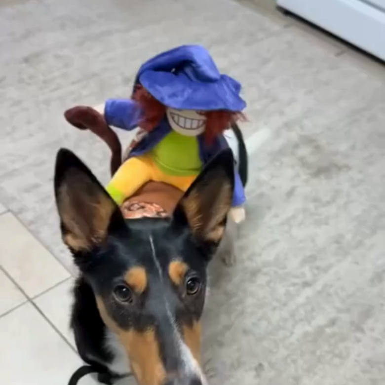 Amazing Illusion Witch Riding Dog Costume: Make your dog a legend this Halloween! This eye-catching illusion costume, with its spooky sounds & glowing LED eyes, is perfect for creating videos to share with friends and followers online. It's guaranteed to get laughs and attention whether you're at a party, walking down the street, or joining the kids for trick-or-treating.