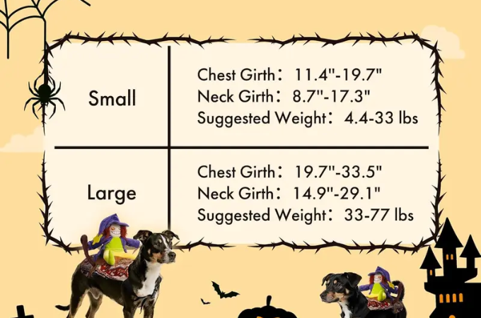 Available in Small & Large Breed: Find the perfect fit for your pup! This costume is available in Small and Large sizes to suit a variety of dog breeds. Please measure your dog and consult our size chart before ordering to ensure the best fit.